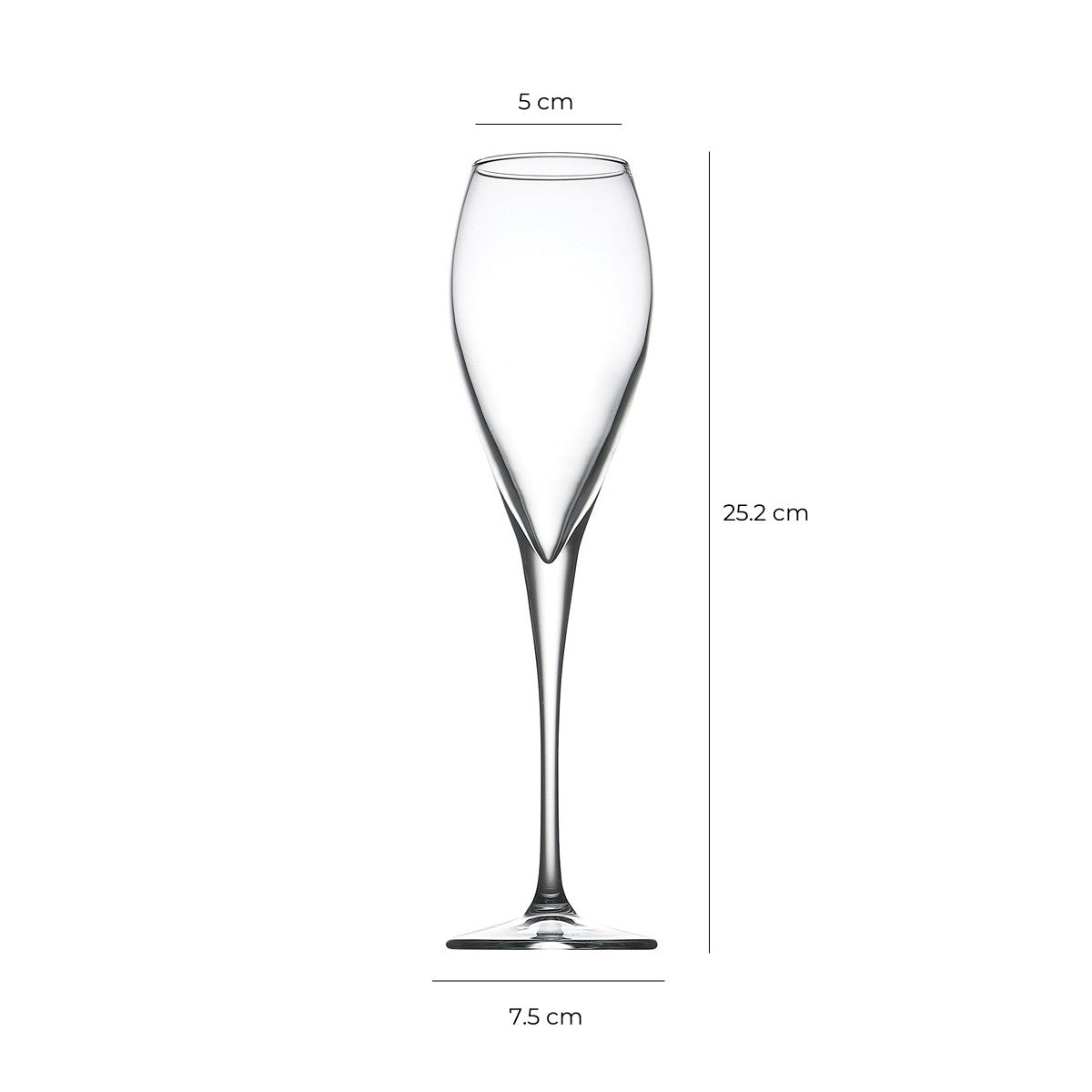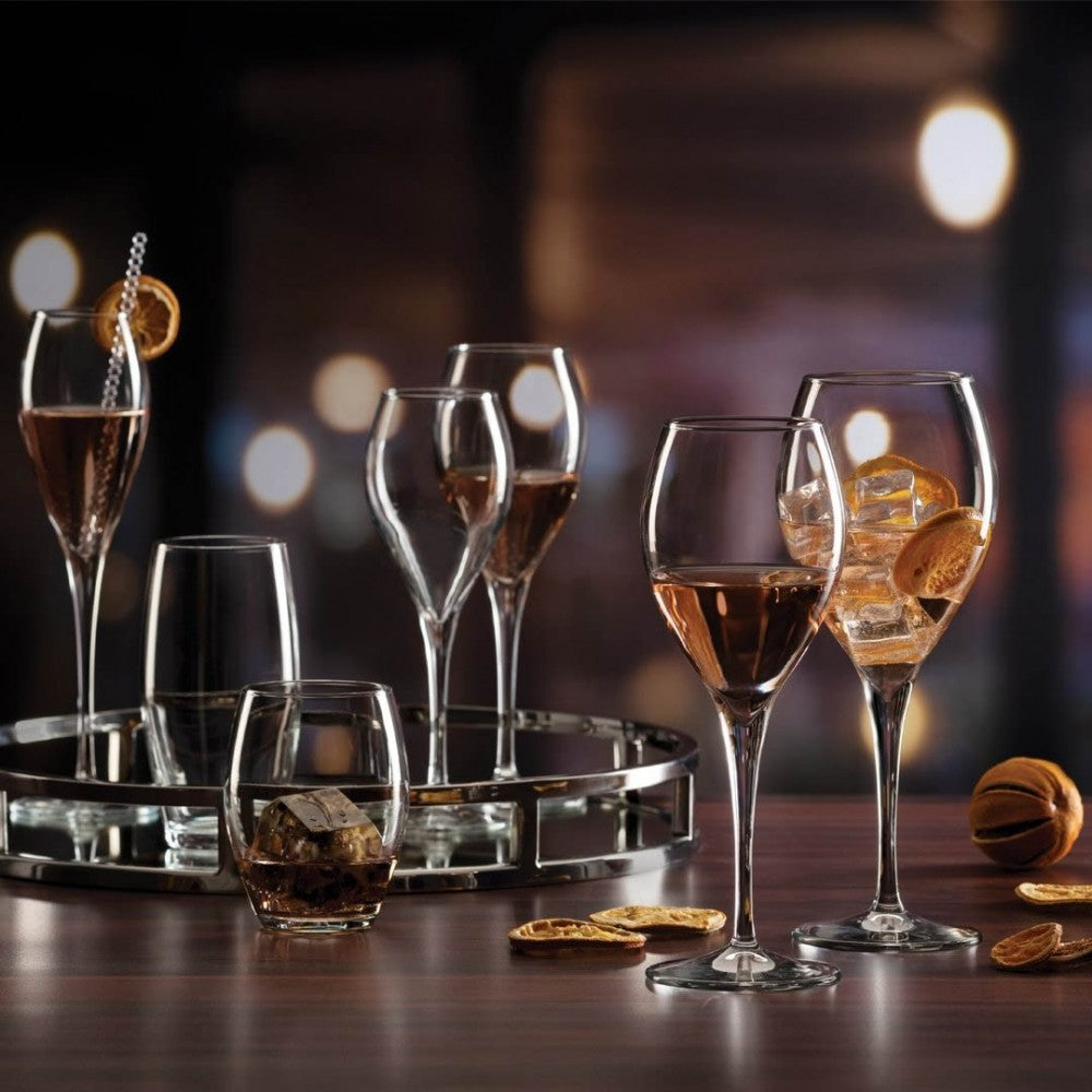Su diseño estilizado, con una altura de 25 cm, aporta distinción a la mesa, mientras que su fabricación en vidrio de alta transparencia permite apreciar los matices y el perlado de la bebida con total claridad. La línea Monte Carlo combina una estética fina con la resistencia necesaria para su uso diario, siendo perfectas tanto para el hogar como para eventos o uso profesional.